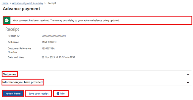 When you make a payment with a credit or debit card, you won’t be able to make another payment with a card for 28 days for this advance type. You can still make a payment at any Australia Post Office.