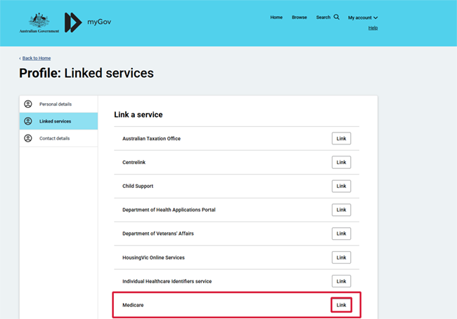 When you’ve entered enough correct details, your Medicare service will be linked to your myGov account.