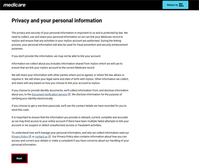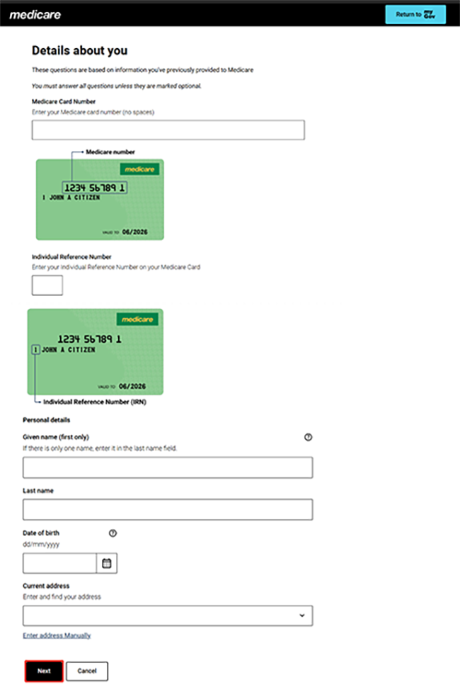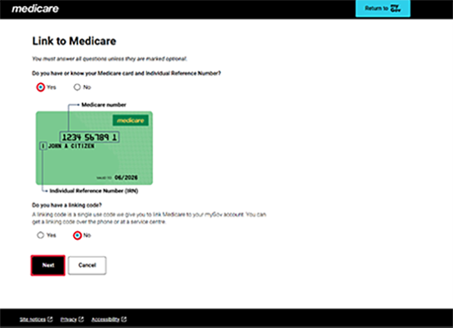 We’ll ask you if you know your Medicare card and Individual Reference Number and if you have a linking code.