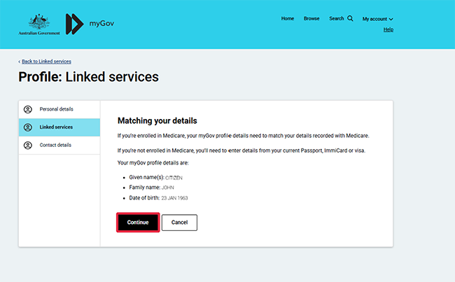 If you’ve already linked Centrelink to your myGov account, we’ll show your myGov profile details. To link Medicare, these details must match the details shown on your Medicare record.
