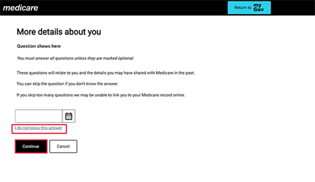 We’ll ask you some questions to make sure we match the correct Medicare record to your myGov account.