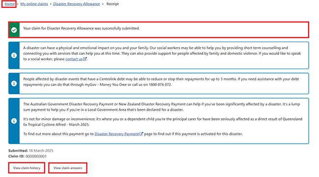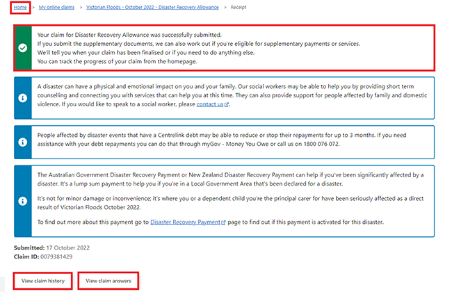 If you withdraw your claim twice, you won’t be able to submit another claim online. If you reach the limit, you’ll need to call us on the Emergency information line for help with submitting your claim.