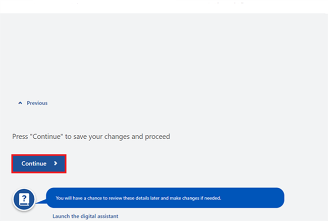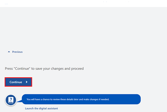 When you’ve answered all the questions, select Continue to save your changes and proceed.