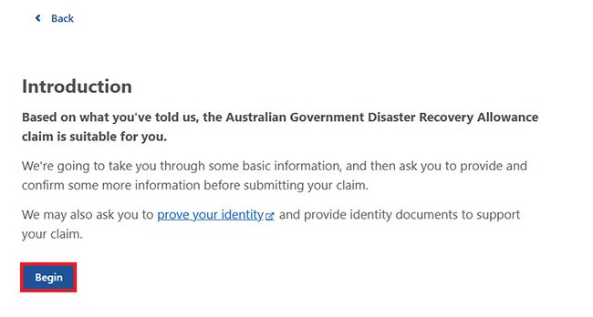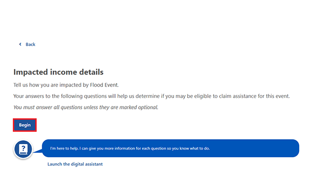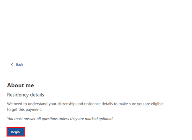 We’ll ask you questions to check if you’re eligible for this payment. Answer all the questions about your current situation by entering the information we ask for. To check your eligibility, select Begin.