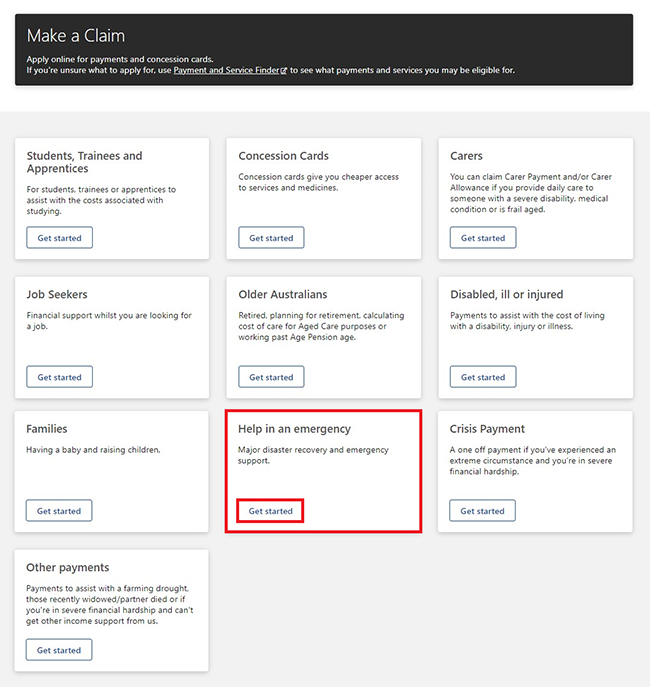 If you can’t use your Centrelink online account, you can call us on the Emergency information line for help claiming this payment.