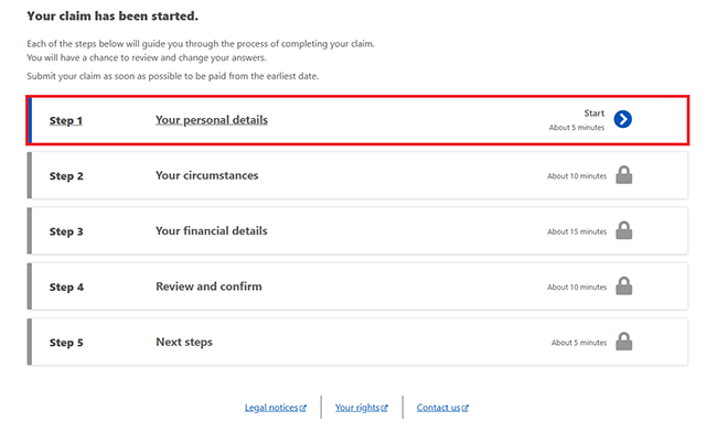 We’ll give you a summary of your claim details. Review each section to check your details are correct. If you need to make changes, select the relevant Update button. For example, select Update Contact requirements to change those details.