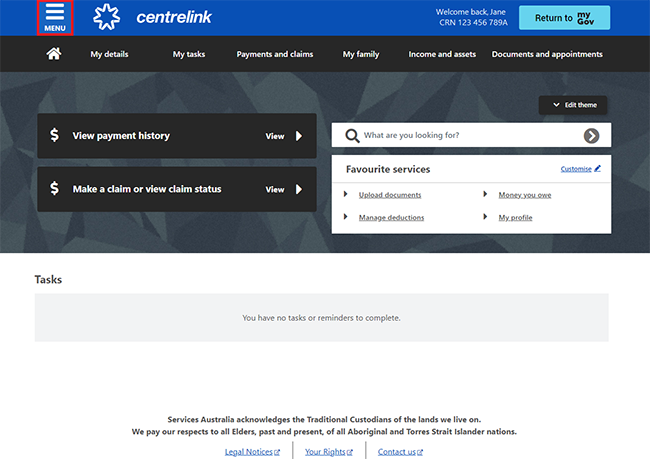 For your privacy and security, sign out when you’ve finished using your myGov account.