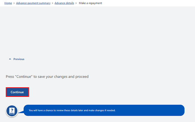 To pay some or all of the advance payment you owe, select Make a repayment.