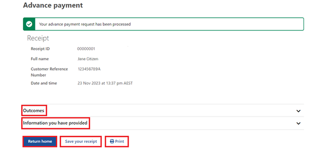 After you select submit, your card issuer or financial institution may ask you to complete additional actions to process your payment. Please don’t sign out of your Centrelink online account or close your browser window.