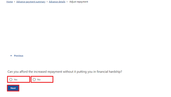 If you’re increasing your repayment, select Yes or No to tell us if you can afford this without putting yourself in financial hardship.