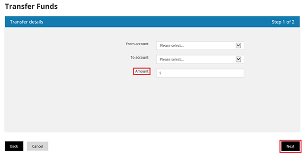 Select the dropdown menu to choose what type of transfer you want to do. Then, select either:
