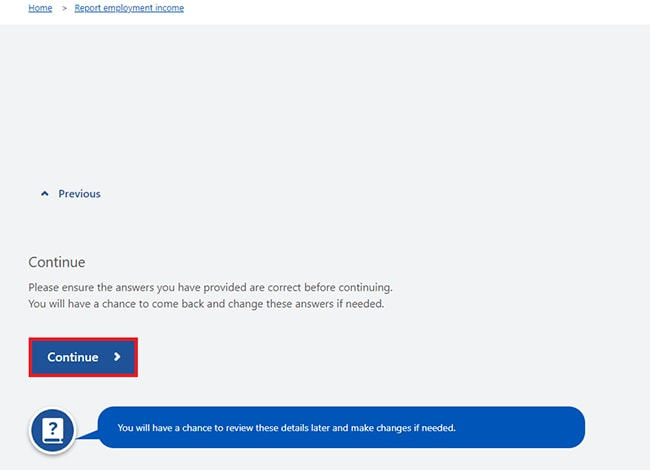 If you’ve met your Job Plan requirements, select Continue. Then go to Step 5 to review and submit the details you’ve given us.