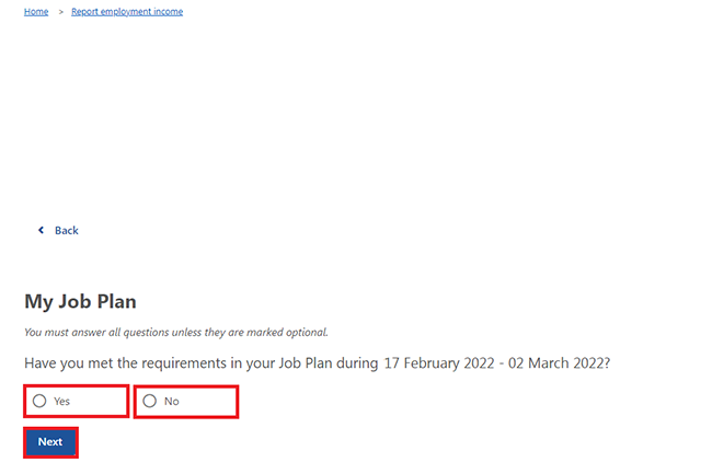 If you’re a job seeker managed by Centrelink, we’ll ask if you’ve met your Job Plan requirements for the reporting period.