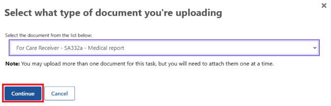 We’ll ask you to confirm which documents you are uploading from the dropdown list.
