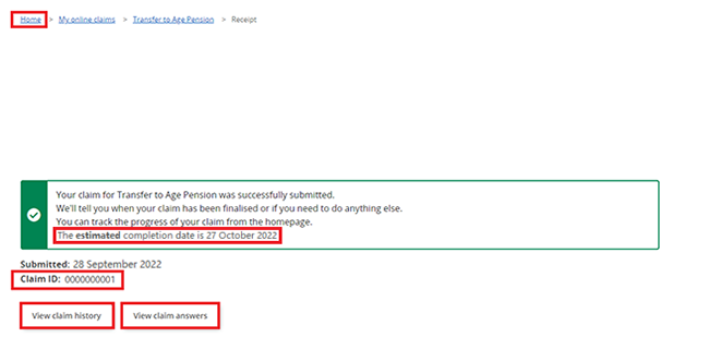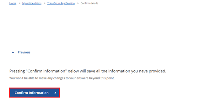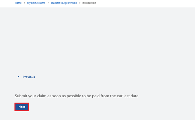 If you select Yes, we’ll advise that you do not need to complete this online transfer to Age Pension. The paper form you submitted will complete the transfer.