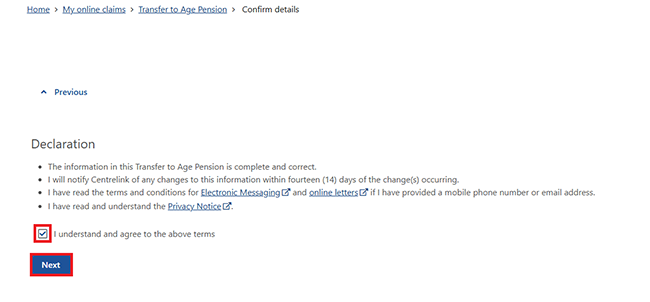 If you select Yes, you don’t need to complete this online transfer to Age Pension. The paper form you submitted will complete the transfer.
