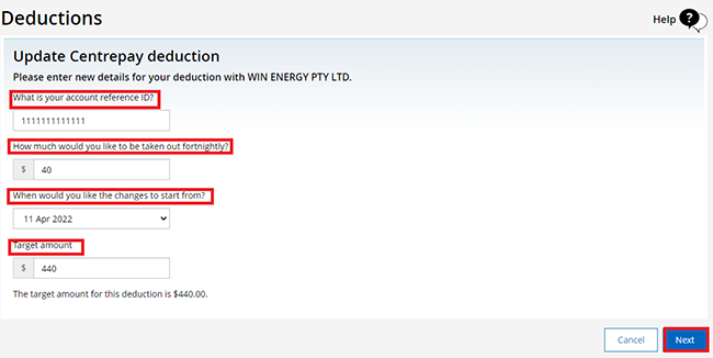 Step 4: update a current Centrepay deduction