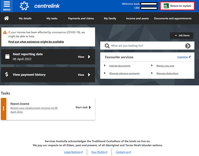 For your privacy and security, sign out when you have finished using your myGov account.