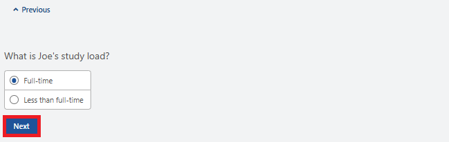 Select your child’s study load, then select Next.