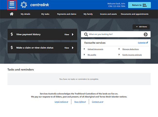 Sign in to myGov or the myGov app and select Centrelink.