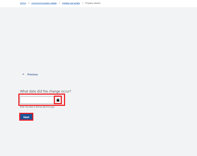 Select the calendar icon and enter the date this occurred. Or, enter it manually in the format of dd/mm/yyyy.