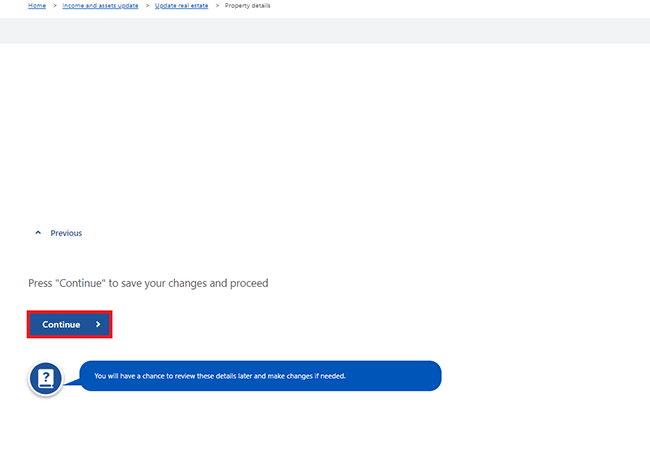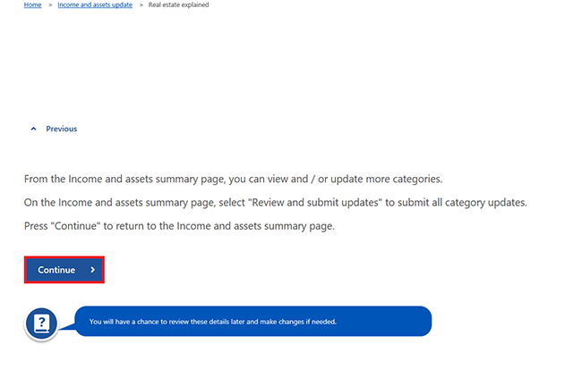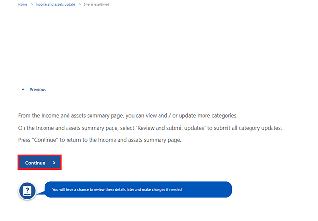 You won’t be able make changes to any of your income and assets details until we finalise your updates. We may contact you to do this.