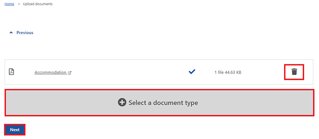 Review the information to make sure it’s correct. If you need to delete a document, select the bin icon.