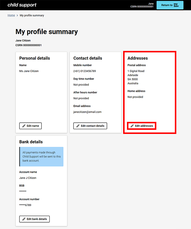We’re redesigning Child Support online. This guide shows how to edit your addresses using the new My profile summary service.