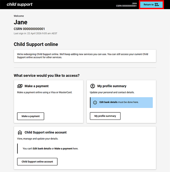 You can still access your current Child Support online account to edit your contact details and for other services.