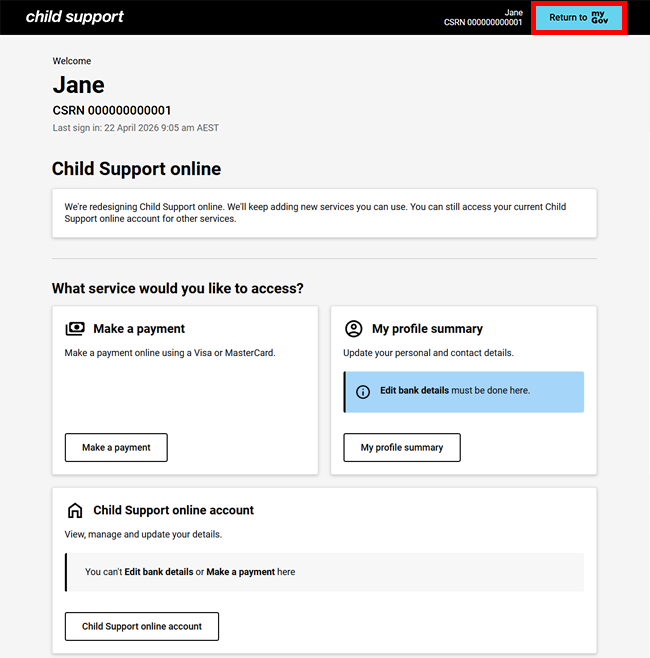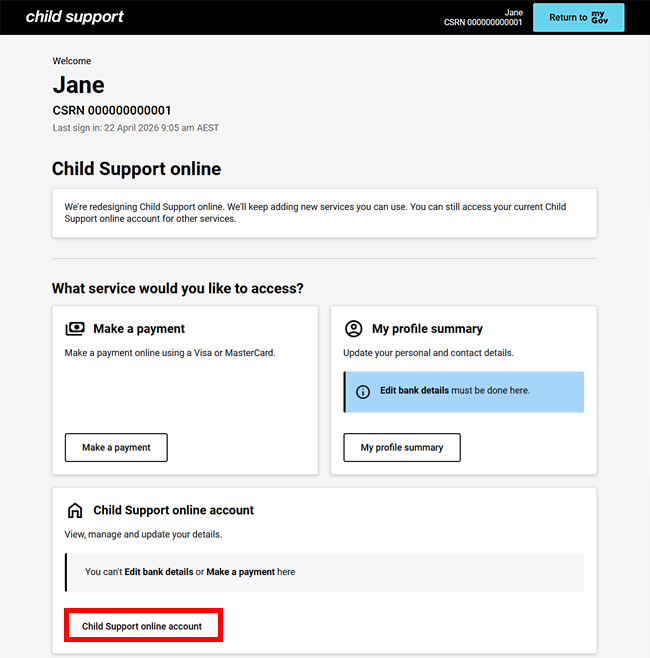 Your existing Child Support online account