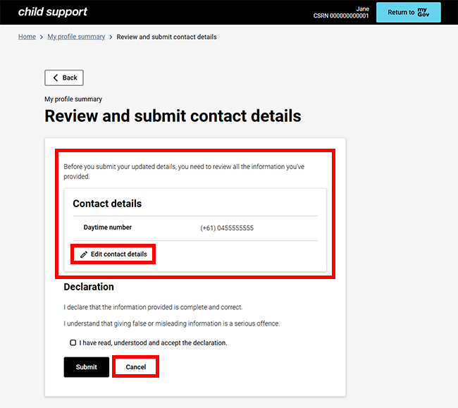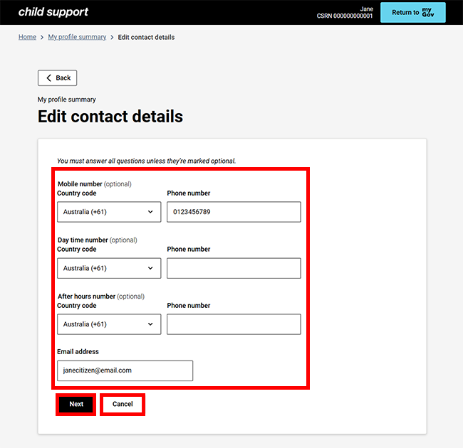 Step 2: update contact details with your existing Child Support online account