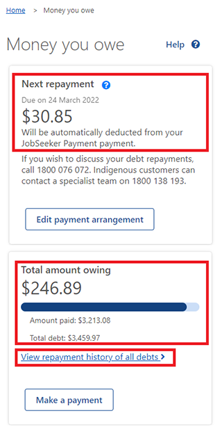 - your Next repayment amount, if you have a payment arrangement set up