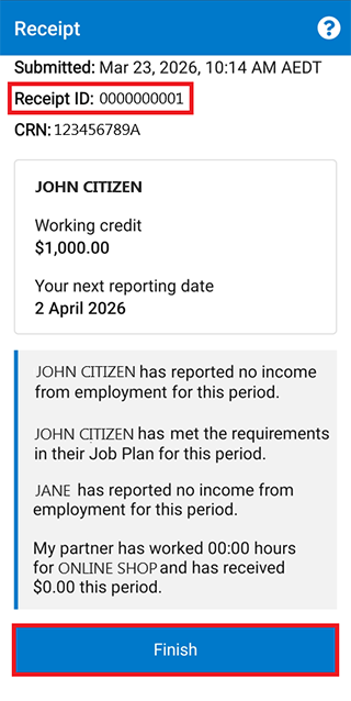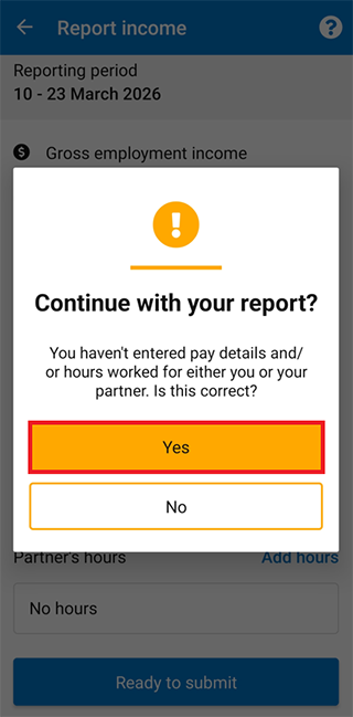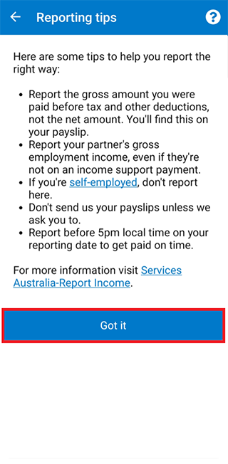If you or your partner did earn employment income, there’s a different way to report this to us. For help, follow our guide Express Plus Centrelink mobile app help - Report employment income.