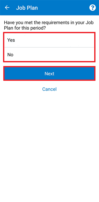 Select Yes or No to tell us if you met your Job Plan requirements.