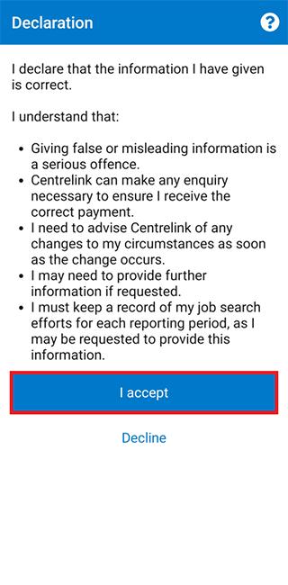 Read the declaration. If you understand and agree with the declaration, select I accept.