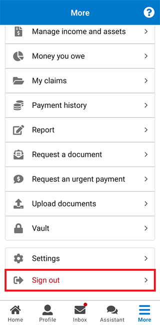 To sign out, select More.