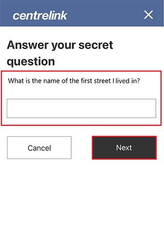 We’ll ask you to either answer a secret question or enter a code. This will depend on the option you use to sign in to your myGov account.