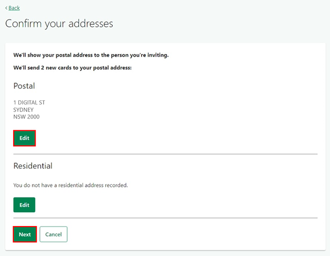 When the person accepts your invite, they’ll be able to see your postal address. This is so they know where we’ll send their new card.