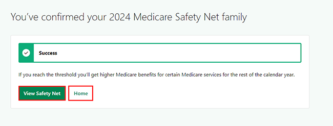 When you’ve confirmed your Medicare Safety Net family, you can select either: