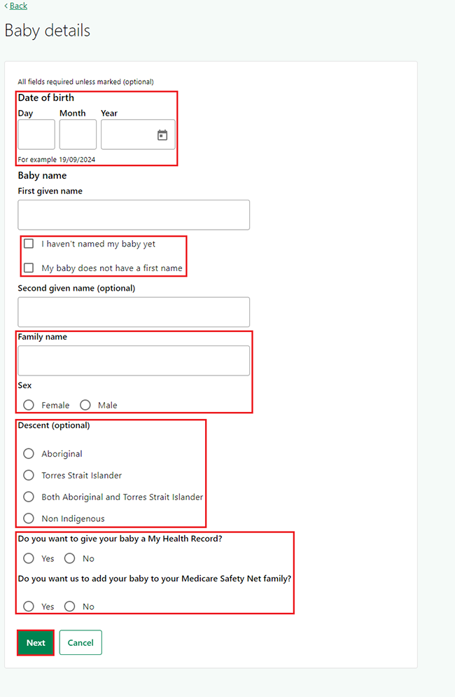 Select Yes if you want to add your baby to your Medicare Safety Net family. If you don’t want to, select No.