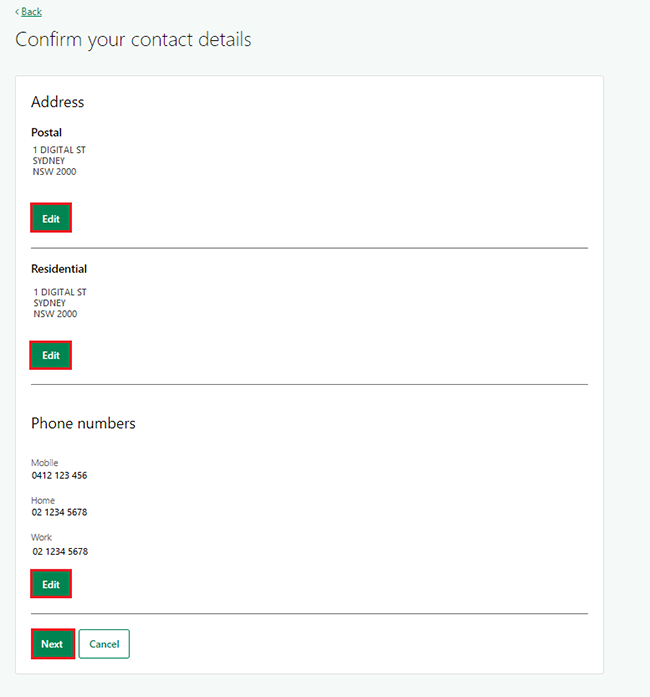 Read the contact details on this page and make sure they’re correct, then select Next. If you need to make changes, select Edit.