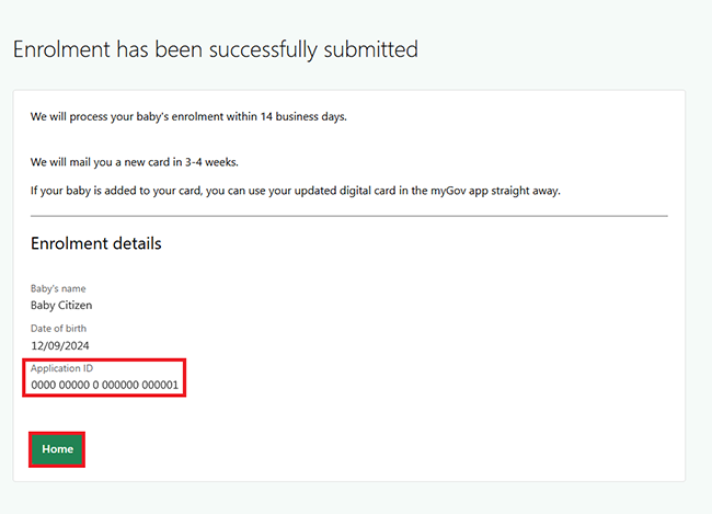 You’ll get an Application ID when your enrolment has been successfully submitted. Make a note of this ID for your records.
