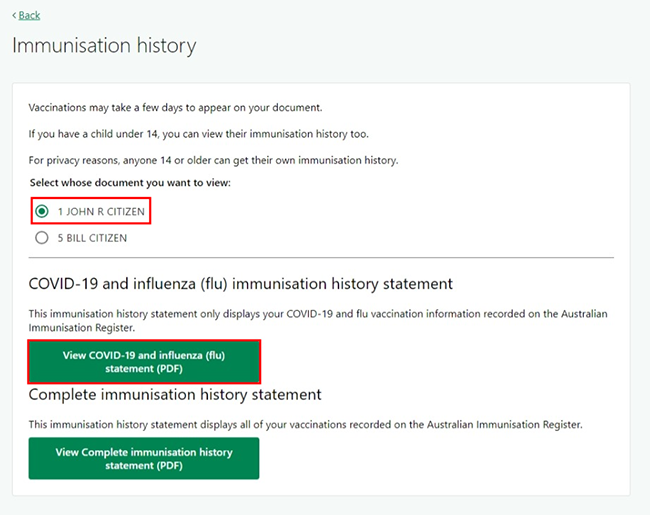 You can get your complete immunisation history statement or COVID-19 and influenza (flu) statement using your Medicare online account through myGov or the myGov app.