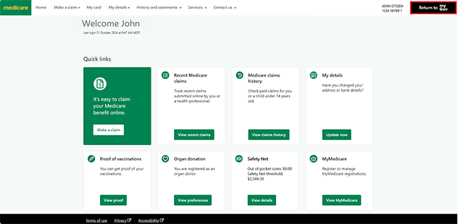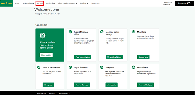 Sign in to myGov or the myGov app and select Medicare.