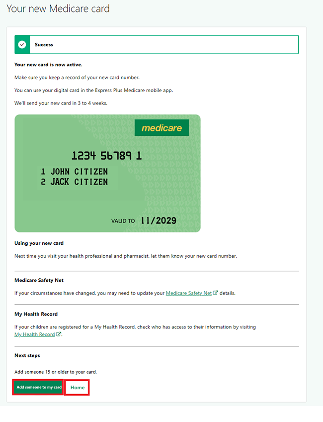 Once you’ve transferred to your new Medicare card, you can add people to it. You’ll need to invite them by using your Medicare online account. Read more about how to add someone to your Medicare card or accept an invite to be added to someone’s Medicare card.