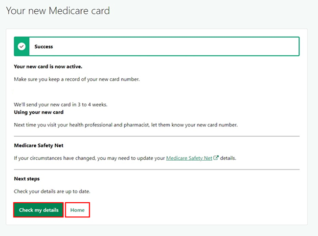 We’ll show your new Medicare card and number. Keep a copy of this number for future reference.