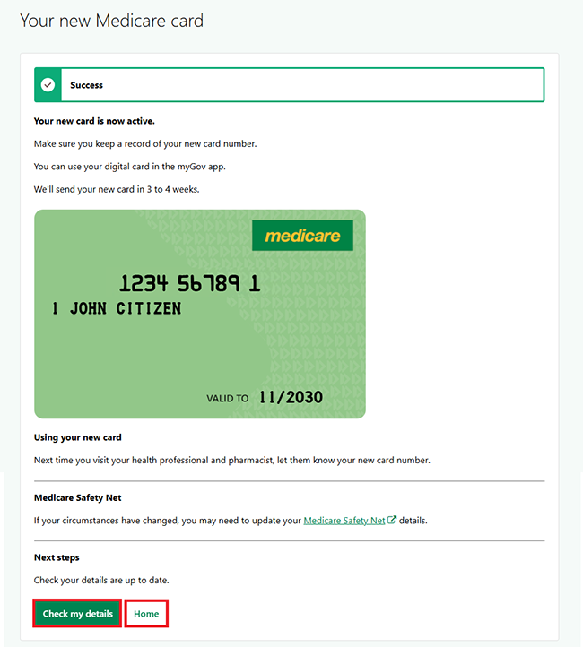 We’ll send your new Medicare card to you in 3 to 4 weeks.