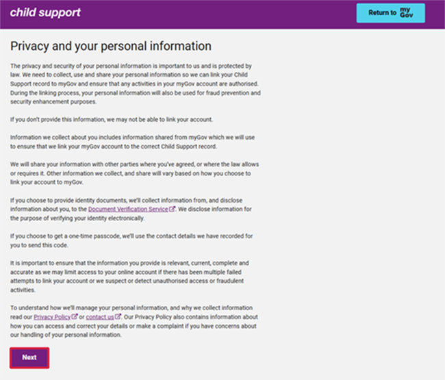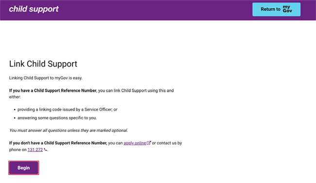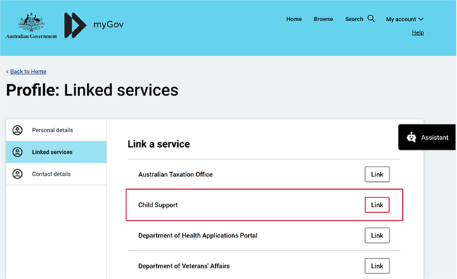 If you’re not an existing Child Support customer, you won’t be able to link to your myGov account.