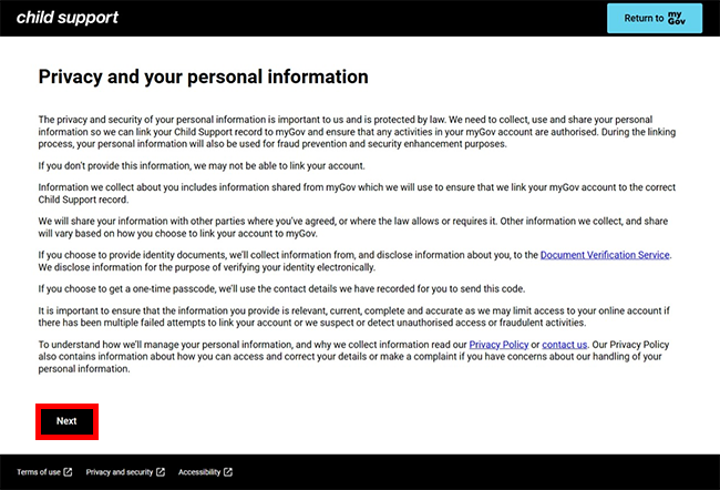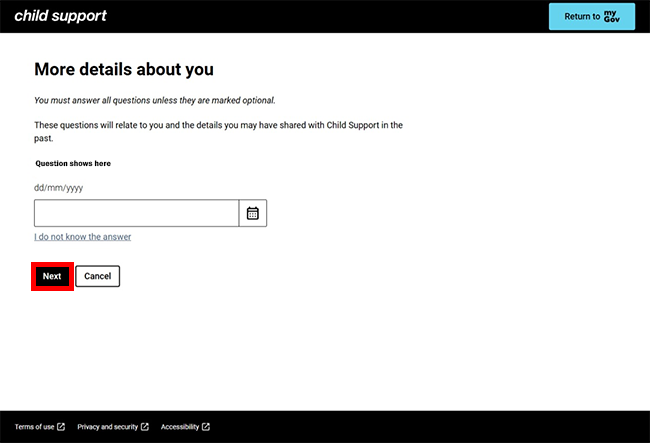 We’ll ask you some questions to make sure we match the correct Child Support record to your myGov account.