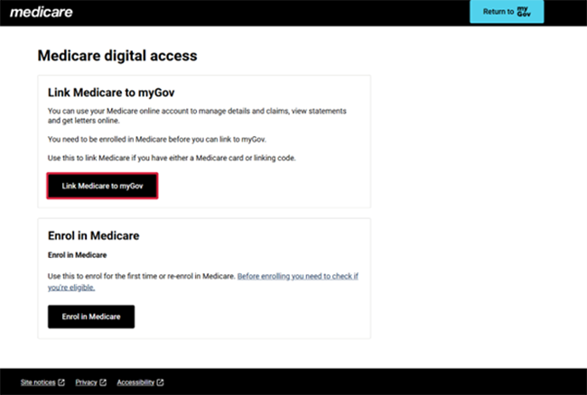 If you’re not enrolled in Medicare, you won’t be able to link it to your myGov account. Find out how to enrol in Medicare.